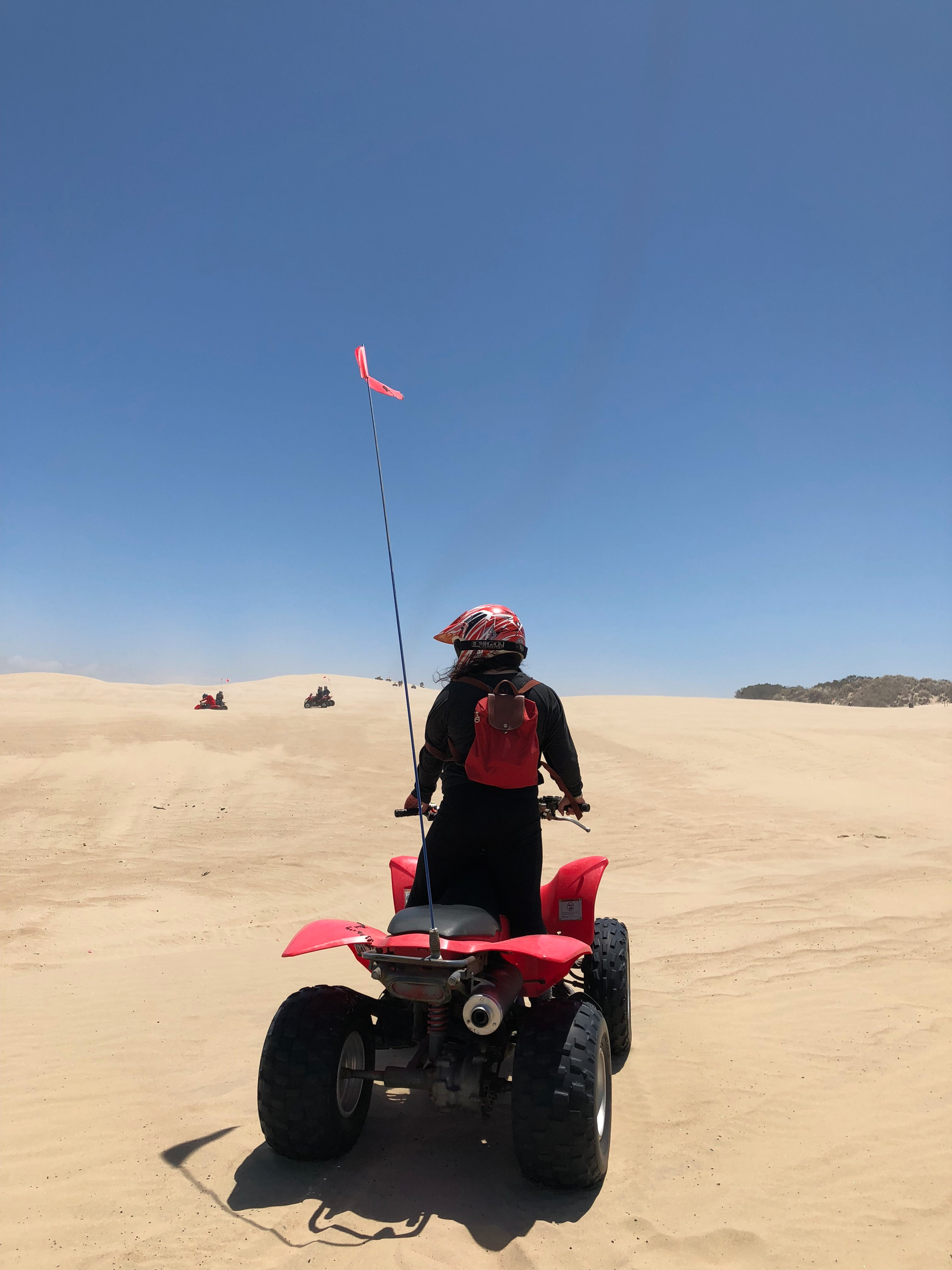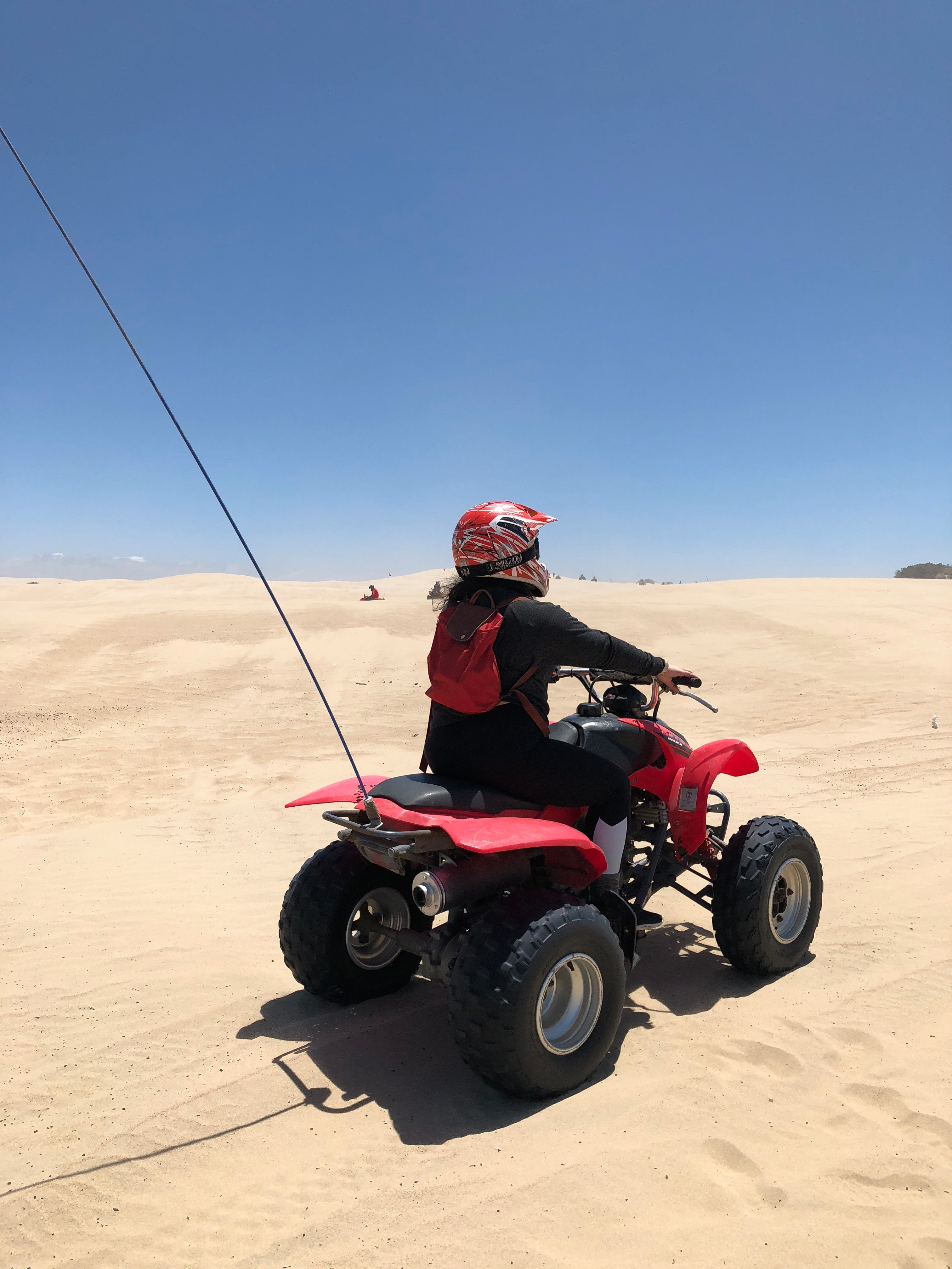 Experience: When I first sat on the ATV I was really scared on how to start it and pressing on the gas, but you just gotta go for it (in the most safest ways ofcourse). You should begin with gently pressing on the gas and then put more pressure as you continue on to the dunes. I am short so I think it might be a little more difficult because you should be sitting more near the rear of the seat for more control, but then when I do, it is hard for me to reach the handle bars and it gets a bit strained, but fair enough it still worked out once you find the perfect position for yourself.