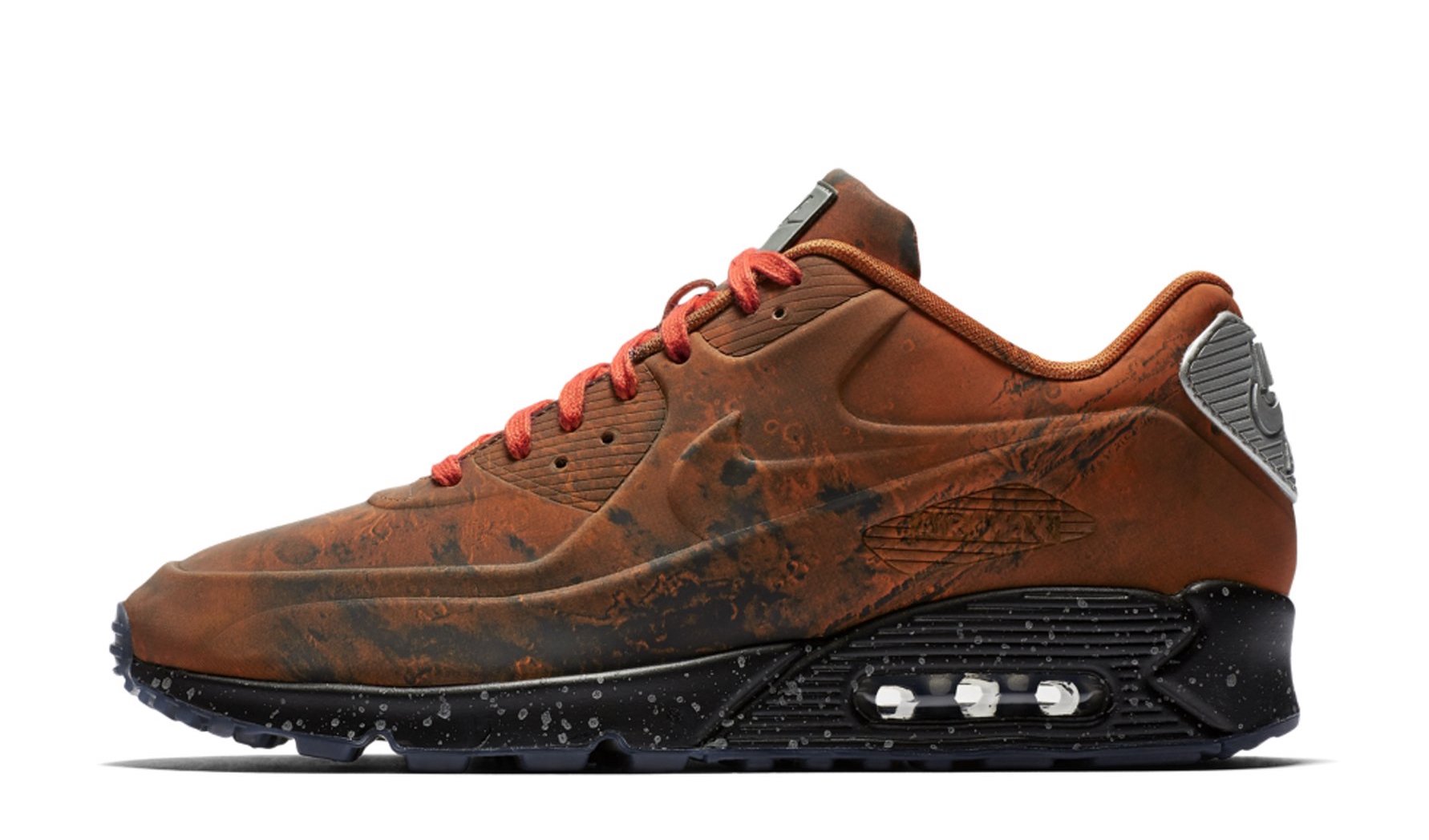 Nike previously released a “Lunar Landing” for their space-theme for the moon. This year, 5 years later, they released Mars Landing. The design is literally ‘out-of-this-world,’ the entire body showcases mars and when photo with flash it is full on 3M reflective.